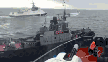 ▲俄羅斯巡邏船撞擊烏克蘭武裝炮艇