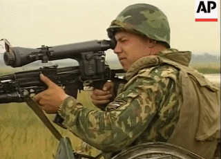 蘇聯解體後的90年代,經濟寒冬,國力倒退,民眾和軍隊的日子都極為窘迫,在世界很多地區都選擇了收縮、放棄的大策略,以美國為首的北約勢力因此甚囂塵上,狂傲一時不再把看似只剩“一口氣”的俄羅斯放在眼裏。
