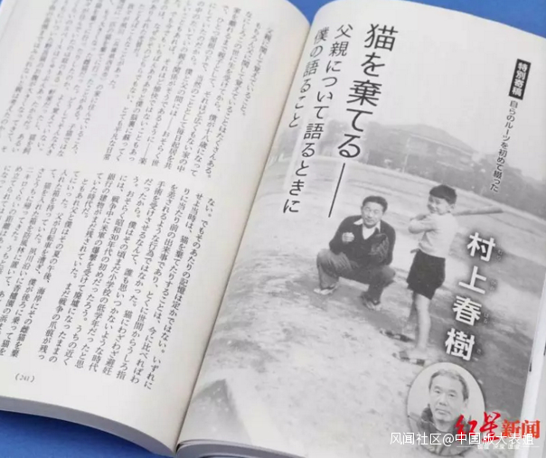 據日本《產經新聞》報道,發表在月刊雜誌《文藝週刊》上的這篇隨筆文章名叫《棄貓,提起父親時我要講述的往事》,一共有28頁,系村上春樹首次公開詳細介紹其家族經歷的文章。文章的封面採用的是一張幼年時代的村上春樹與父親一起打棒球的黑白照片。