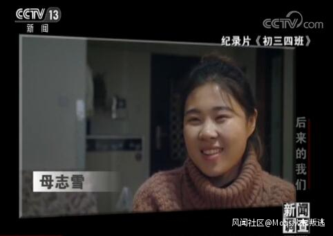 《初三四班》影片中那個活潑開朗的母志雪同學沒有接受採訪,她回覆説:“我們的生活感悟你們都應該感受得到,初三四班其他人説的話,大多數也是我想説的。”