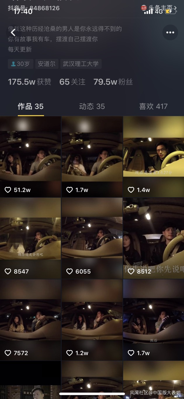 涉嫌偷拍的車主共發佈短視頻作品35個