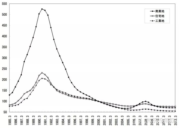 1990年開始,面臨金融風險的日本開始對市場進行調控,連續五次上調利率,導致房地產泡沫在1992年破滅。