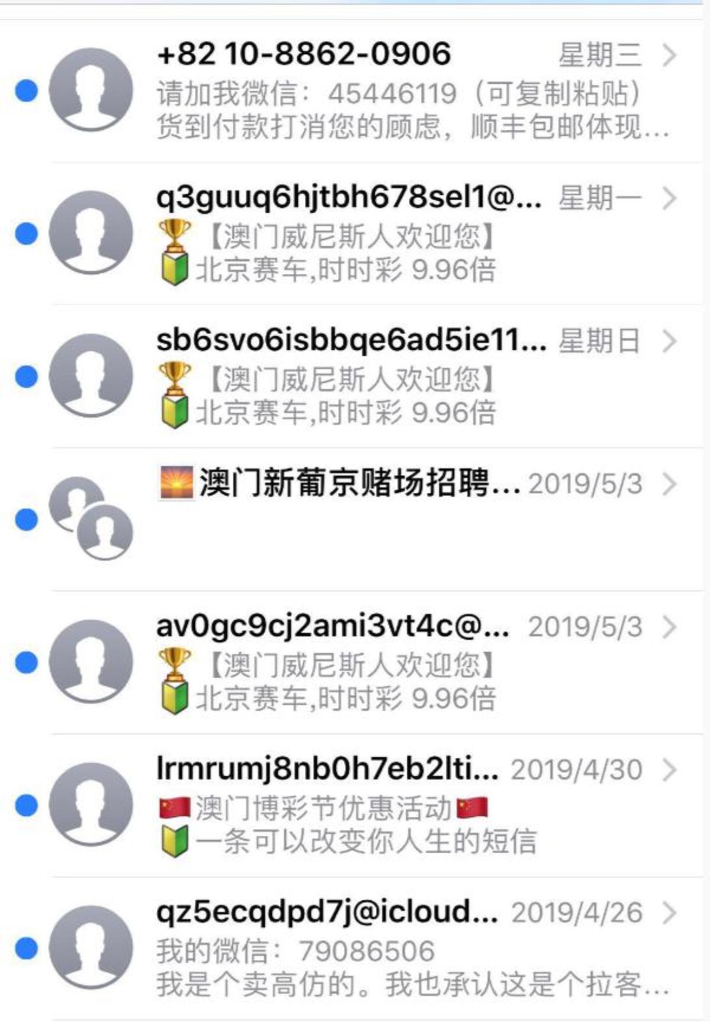隨着iMessage博彩、假貨等垃圾信息越來越多,曾經的“六合彩”垃圾手機短信卻在逐漸減少,預示着iMessage垃圾信息似乎有取手機短信而代之的趨勢。