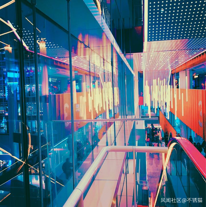 不僅僅是車水馬龍的城市街景,商場裏俯瞰的巨型廣告顯示屏也很賽博哈哈哈哈