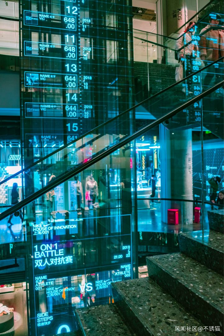 nike店好賽博,其實很多品牌大型旗艦店是個拍賽博好去處,樓梯 鏡子 電梯間