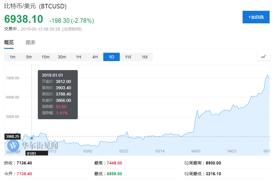 2018年12月,比特幣曾跌至3100美元。但自今年2月以來,其價格已然翻倍,成為全球範圍內表現最好的資產。