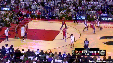 因為是第七場,大家都打得很尷尬。費城還是用西蒙斯堵萊納德,恩比德主防西亞卡姆同時護筐。猛龍還是不讓恩比德進禁區。費城還是用哈里斯和吉米·巴特勒打單邊二人轉,讓恩比德和雷迪克走二人轉,拉開空間後,給西蒙斯籃下喂餅。