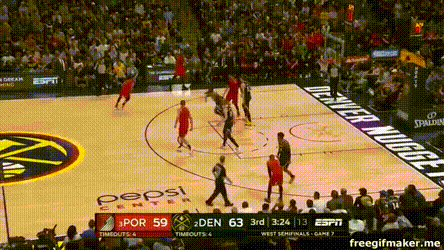 今天掘金對利拉德的防法:克雷格高位領防掐超遠射,利拉德找掩護則約基奇上線延阻,逼利拉德朝底線走,然後失去平衡的後仰投籃。