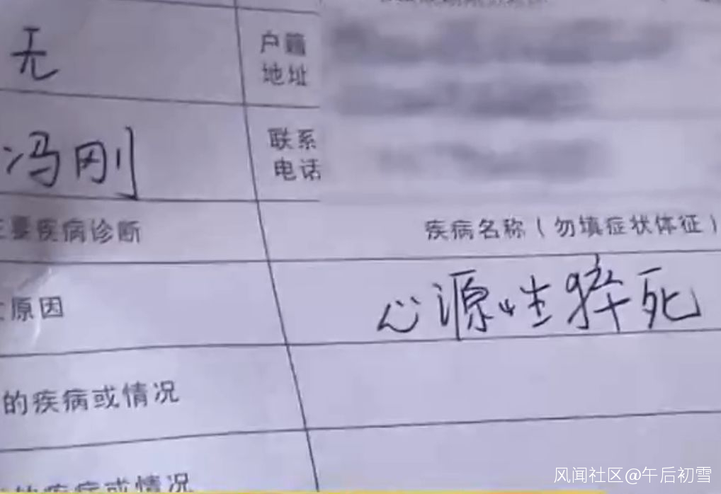 在醫院開具的死亡證明書中,直接死亡原因為心源性猝死。可馮先生對於這個結果,心存懷疑。
