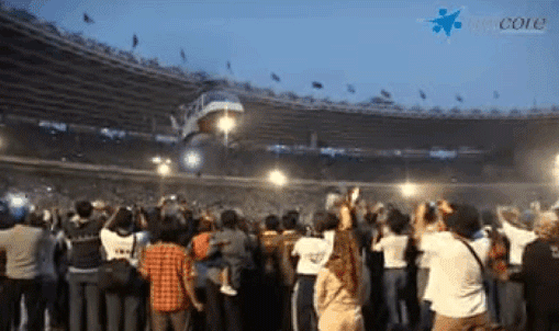 後來,敞篷車已經滿足不了李總。2006 年,也就是在那個具有 “ 歷史性 ” 的10 萬人盛典上,李總乘坐直升機降落在印尼雅加達 SENAYAN 體育場中央,向他的事業夥伴們致以了親切的問候。
