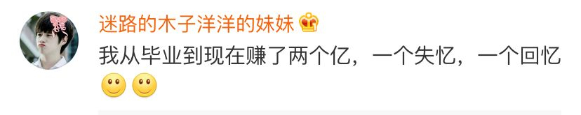 也有網友調侃:畢業到現在賺了兩個億,一個失憶,一個回憶。