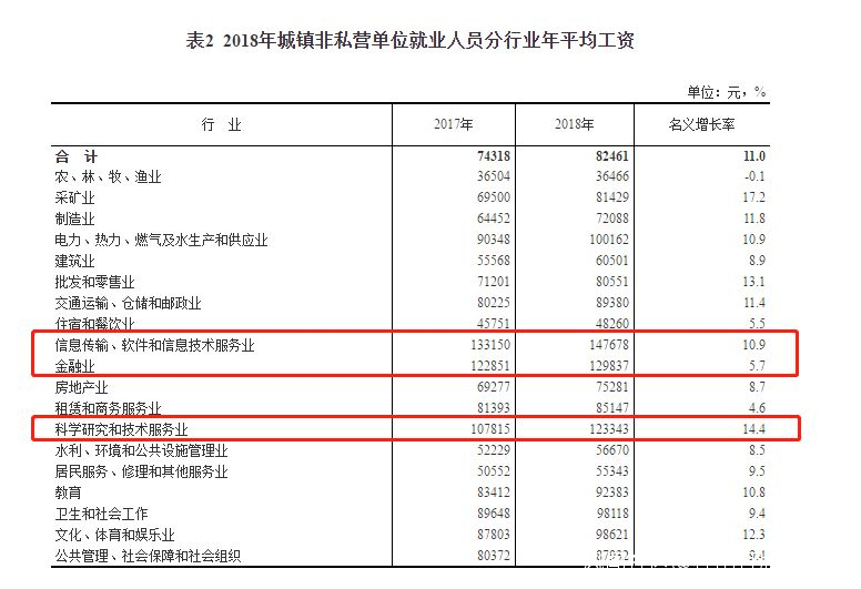 數據顯示,在城鎮非私營單位中,信息傳輸、軟件和信息技術服務業達到147678元,首次突破14萬元,佔據各行業平均工資水平的首位。