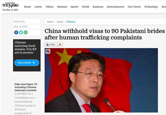 “駐伊斯蘭堡的中國大使館已拒絕向90名巴基斯坦新娘發放簽證。今年(中巴)跨國婚姻簽證申請數量創紀錄增長,2019年使館方面收到了140份為巴基斯坦新娘辦理簽證的申請……”↓