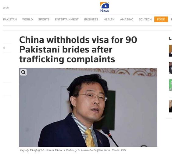 據《新聞報》報道,趙立堅還要求巴基斯坦政府重新審查對中國商人的入境簽證政策,因為巴基斯坦的一些婚介機構正在濫用這一簽證。他説,巴方應該調查那些邀請冒牌商人來巴基斯坦尋找伴侶的機構。