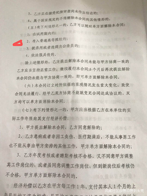14日上午,夏紅向澎湃新聞坦言,自己知道合同裏寫明瞭“考入普通高等院校,乙方可以隨時單方面解除本合同”的條款,但現在全縣師資力量不夠,自己也不能開這個先例。她同時稱,今年教育局的合同將去掉乙方可以隨時單方面解除合同的條款。
