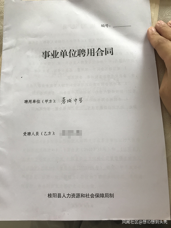 小娟向澎湃新聞介紹,她於2017年通過公開招聘進入桂陽縣蓉城中學工作,當時與學校簽訂了事業單位聘用合同。