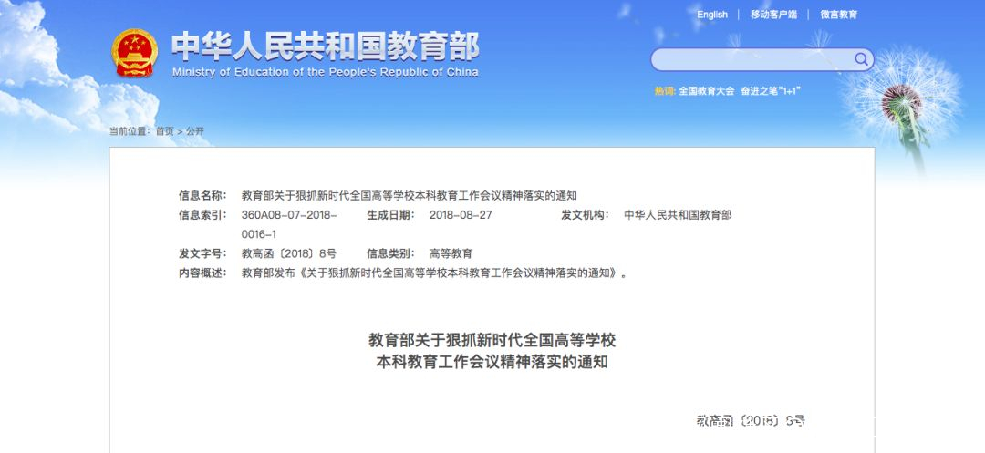 同年,教育部下發《關於狠抓新時代全國高等學校本科教育工作會議精神落實的通知》,要求各高校要全面梳理各門課程的教學內容,淘汰“水課”、打造“金課”,切實加強學習過程考核,加大過程考核成績在課程總成績中的比重,嚴格考試紀律、嚴把畢業出口關,堅決取消“清考”制度。