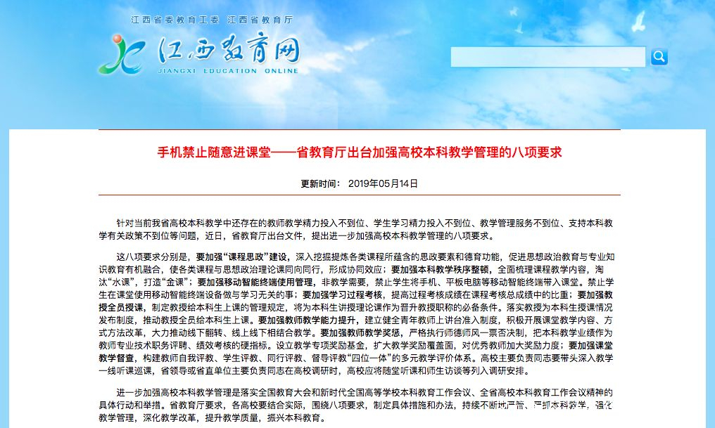 教育廳通知!江西本科生手機禁入課堂,除非…_風聞