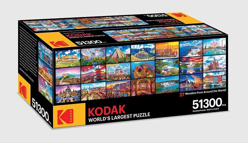 到了今年,柯達和兒童玩具品牌 Cra-Z-Art 合作開發了世界上最大的一個拼圖,一共有 51300 塊拼圖,裏面 27 組拼圖分別對應全世界 27 個知名地標建築。