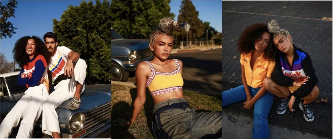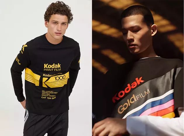 在去年,柯達分別與兩大快時尚品牌 H&M 和 Forever 21 推出了聯名服飾,讓你把柯達“穿在身上”。雖然百年老店已經沒落,但醒目的 logo,經典的配色一出現,還是讓人過目不忘。