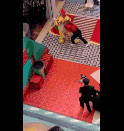 我在網上看了幾個零碎的現場視頻,又研究了商場佈置圖,大致還原了求婚過程。應該是因為何猷君英文名叫Mario,求婚整體設計是馬里奧救公主主題。