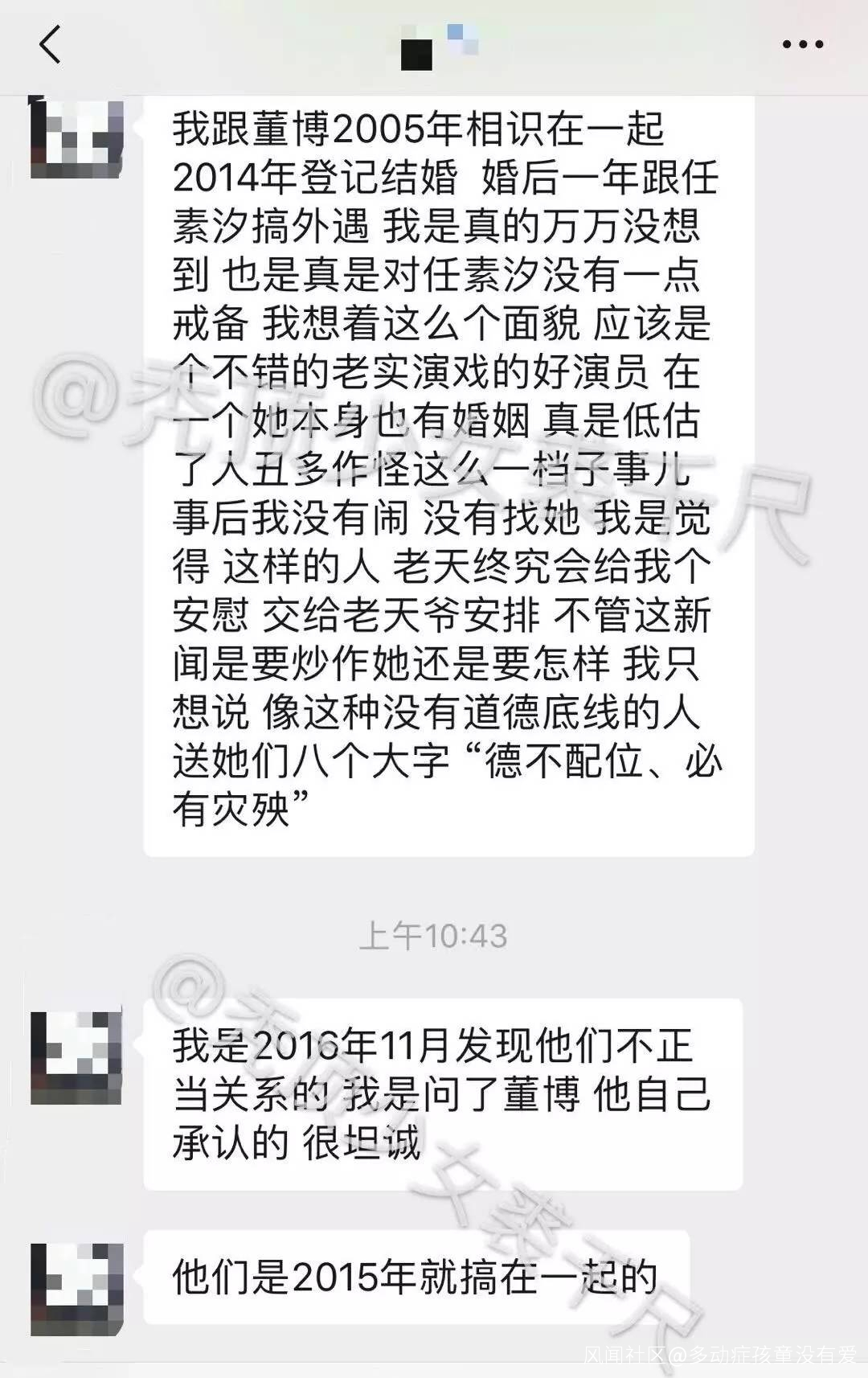 提起董博與任素汐的關係後,前妻的情緒有些激動,足以可見她確實在這段感情中受到了傷害。前妻表示想通過我們向任素汐傳達8個字:德不配位必有災殃。