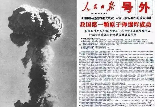 1964年10月16日,我國第一顆原子彈爆炸成功。