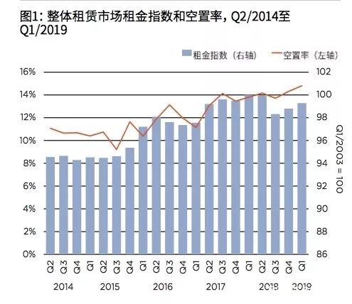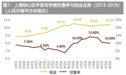 這是最近4年上海甲級寫字樓租金的變化情況: