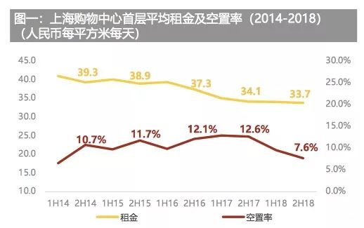 但是過去4年,這些商鋪的租金普遍下跌,其中又以上海的降幅最為明顯,從2014年的40元/m²/天,降到了33.7/m²/天,降幅高達16%。