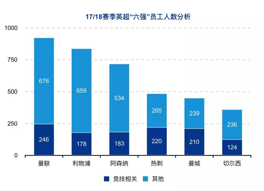 從英超六大豪門最新的年報披露看,曼聯的員工人數922人是最高的。