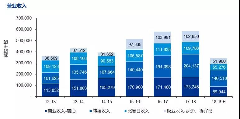 在歐冠新分配機制的驅動下,18-19上半賽季曼聯的轉播收入較上賽季同期增加3,050萬英鎊,整個賽季總營業收入跨上6億英鎊是板上釘釘的事。