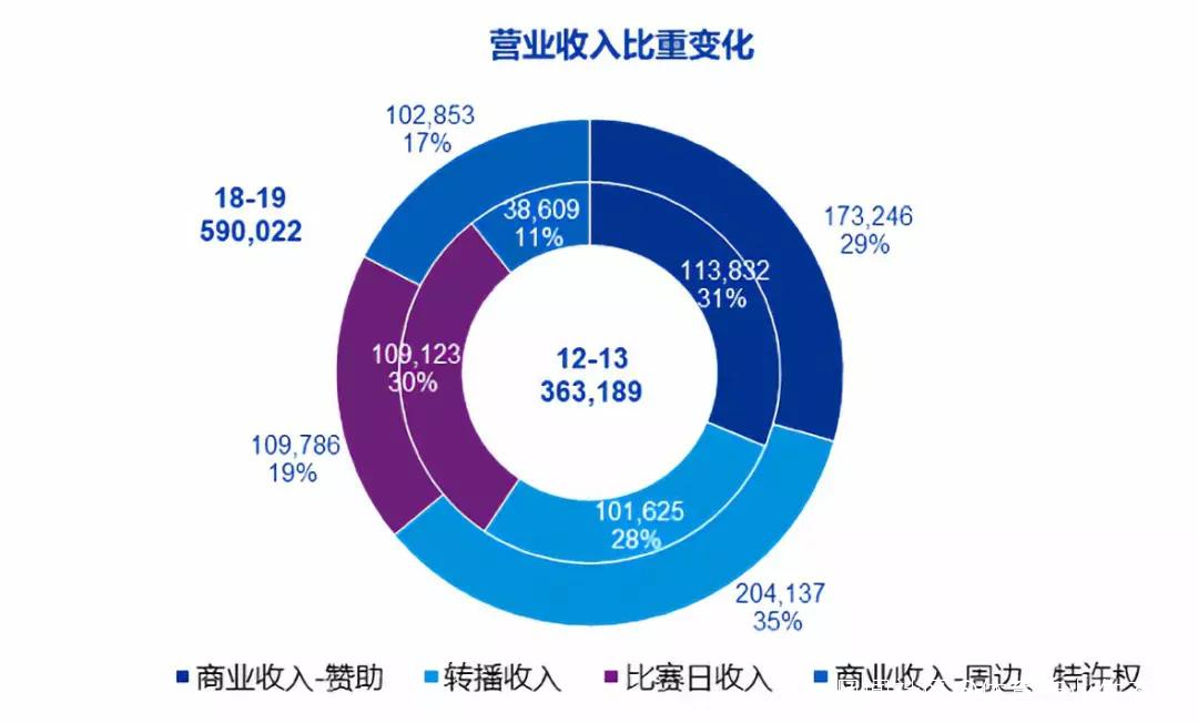 曼聯官方將營業收入分為三類——商業收入、轉播收入和比賽日收入,該分類也是業界通行的分類方式。