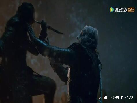 如何下線呢?夜王如此強大的人物必須也有個令人震撼的結局——身高才到夜王腰線的二丫跳起來就把他捅死了。