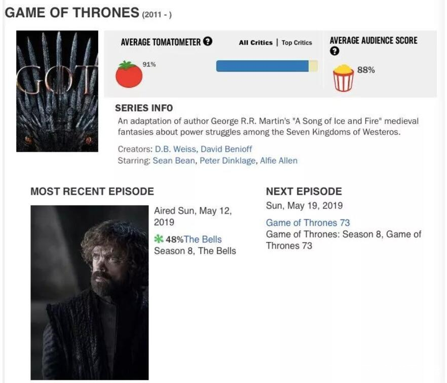 《權力的遊戲》演到第八季第五集了,雖然豆瓣評分仍然維持在8.8的高分,但評價實在是不樂觀。