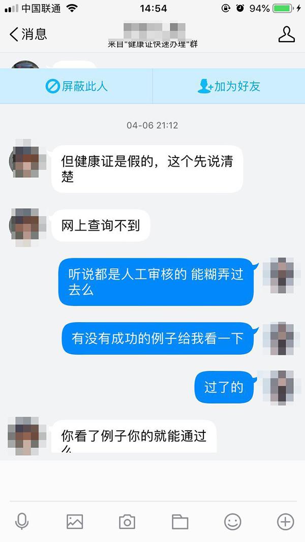 然而,通過非法渠道偽造健康證快速通過審核的情況似乎並不少見。