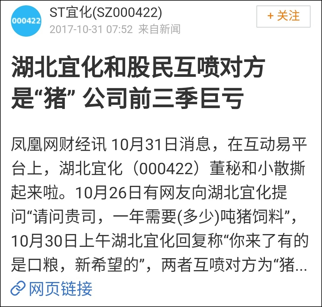 2017年10月,湖北宜化在互動平台和投資者互懟,“你來了有的是口糧,新希望的”。