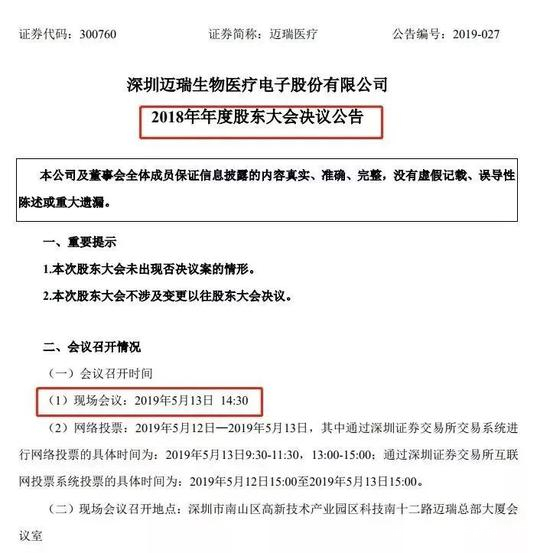 5月13日晚間,有投資者在雪球平台發帖表示,當天下午參加了邁瑞醫療的股東會,非常令人失望,該投資者稱,董秘當着30多位參會的現場股東,發表了非常不合適的言論,“你們散户”,“今天有好多股東,只有100股,也來參加股東大會,不知是何居心”。