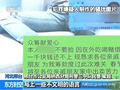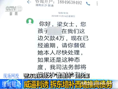 邢台市公安局橋西分局刑警三中隊民警 梁超:首先他們會選擇給這個女孩打電話催她還款。如果這女孩不還款的話,就會騷擾她的親戚、父母、朋友、單位的領導,如果再不還的話,他就會ps張圖片,把這個女孩的頭像旁邊寫上一些不文明的語言,發給這個女孩和他通訊錄上的所有人。再不還的話,這夥催款人他們有呼死你設備,那種羣呼設備,它會往這個女孩手機上進行狂轟亂炸來騷擾。