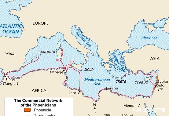 就這樣,黎巴嫩的腓尼基人,沿着地中海做買賣,賣染料、賣石頭甚至賣木頭,一來二去,地中海一圈都被他們佔據了——