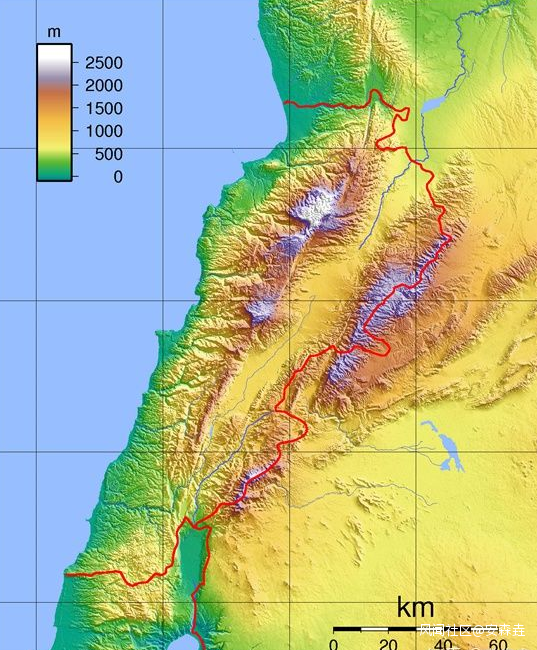 圖 黎巴嫩地形。
