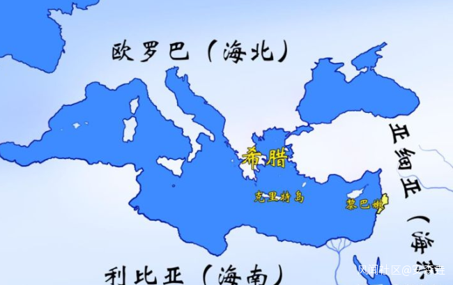 腓尼基人從一個彈丸之地,通過航海不知不覺對日後產生了這樣的影響,他們更想不到的是,這個居無定所的海洋民族,把地中海看成了天下中心,於是他們就開始以地中海為核心,把世界分成了**“海東”、“海北”、“海南”**三個部分,有點像我們中國的九州概念。