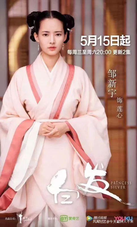 看看鄒新宇在新劇《白髮》中的劇照海報:一襲淺粉色糯裙,淡施脂粉,清麗可人。她在裏面飾演蓮心。