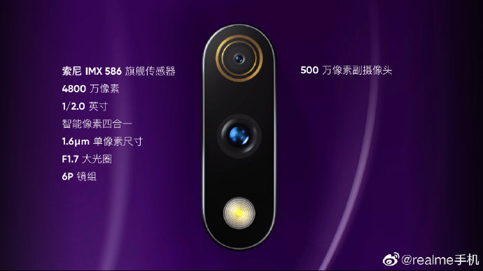 而realmeX採用彈出攝像頭方案,使用6.53英寸、1080P的三星amoled屏幕,屏佔比達到91.2%算是宣傳重點;SOC上和青春版一樣採用驍龍710,另外值得一提的是閃存採用了USF2.1;指紋採用匯頂新一代屏下指紋;後置攝像頭採用索尼IMX586為主攝,輔助一顆500萬像素的副攝(又是個湊數的副攝…);充電和電池容量方面,充電仍然是VOOC 3.0,電池容量降低到了3675mAh;後蓋同樣採用漸變色工藝,有蒸汽白和朋克藍兩個配色。