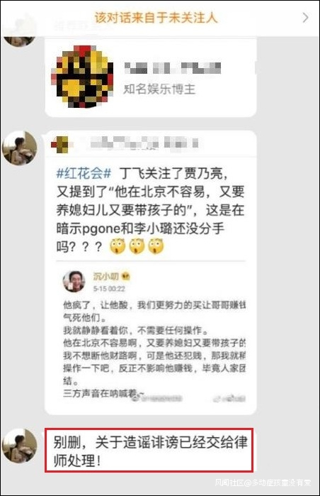 網友爆料的截圖中,李小璐工作室對網傳內容表示:“別刪,關於造謠誹謗已交給律師處理。”