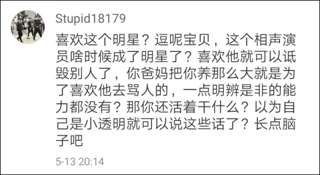 認為自己的言語不構成是辱罵;認為自己只是單純地喜歡一個明星;認為自己是小透明,所以可以胡亂發言……這些藉口可真是非常地好找呢?
