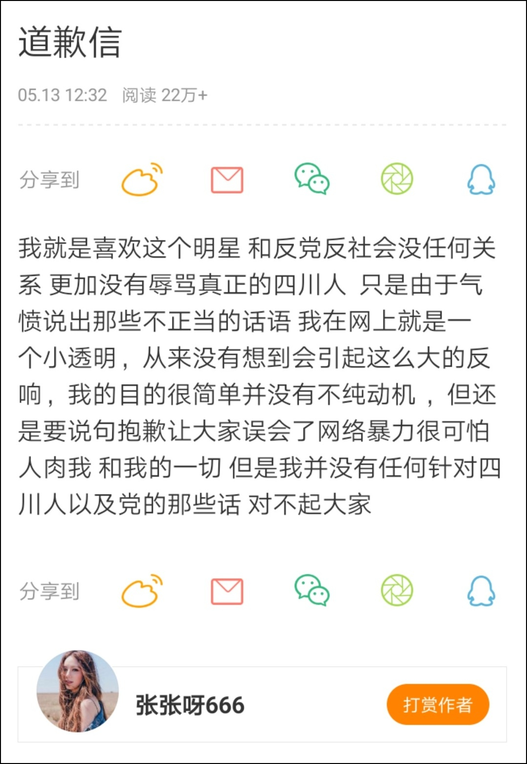 發佈道歉信開打賞,這個操作更是令人感到新鮮!
