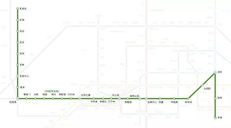 它連接了一個火車站(深圳火車站)、一個機場(寶安機場)、一個大學(深圳大學)、兩大商圈(老街+華強北)、三個CBD(福田+羅湖+前海)、深圳上市公司第一聚集區(南山科技園)、深圳最強旅遊區(世界之窗+華僑城)。