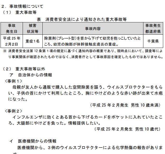 所以這就是一個在開放環境下不會有防護效果反而可能引發皮膚過敏的偽科學產物,在2013年被日本消費廳曝光後依然沒有停產,還出口到國內來了,配合一些在密閉環境下的殺菌報告弄出來的廣告文案很有誤導性。