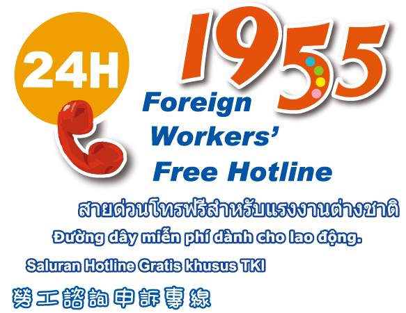 為了保障外籍勞工的權益,2009年政府開通“外籍勞工24小時諮詢保護專線1955”,讓勞工可通過熱線電話諮詢勞動法令。