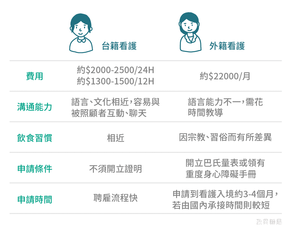 去年台灣地區的失能老年人口高達112.8萬人(總人口2358萬)。雖然政府努力推動長照計劃,但台灣籍的居家看護人員數甚至不到一萬人,人手不足加上薪資相較高的情況下只好繼續引進外籍看護。